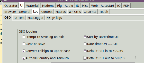 - Click Configure > UI > Log > QSO and enable the RST defaults (check the box that says "RST always 599/59"). That way you won't have to take the time to capture the RST values during the QSO.